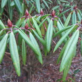 Редкий и ценный вид, известный своей необычной листвой. Молодые листья окрашены в стальной синеватый оттенок, который придаёт кустарнику особую декоративность, это вечнозелёный рододендрон, поэтому декоративная листва украшает сад круглый год.