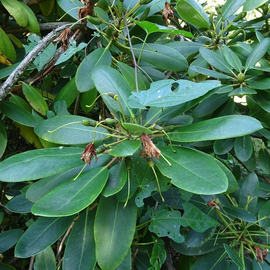 Вечнозеленый раскидистый кустарник высотой 2 - 3 м, листья светло-зеленые, до 15 см длиной, ароматные крупные цветы 5 - 9 см в диаметре, по 8—10 в соцветиях, окраска варьирует от нежно-розовых до белых.