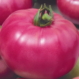 Раннеспелый сорт крупноплодных розовых биф-томатов, плоды красивые гладкие, блестящие, плоско - округлые, ярко-розовые, без зеленого пятна у основания. Мякоть плотная, сахаристая, масса плода 220 - 3350 грамм.