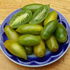 Среднеранний сорт. Куст высокорослый, 1,2-1,5м. Плоды пестрые, удлиненные оливково-зеленые, довольно крепкие, вкус фруктовый, сладковатый, весом 40-60 грамм. Не гниют очень быстро, как часто бывает у зеленоплодных сортов. Растут кисточками по 5-8 шт.