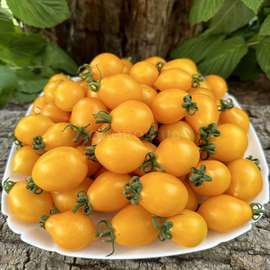 Раннеспелый сорт, куст высотой 1,5-1,8м. Растения с картофельным листом, в каждой кисти 7-9 плодов весом до 30 грамм. При полной спелости – насыщенно-желтые сливы с вытянутым носиком, с двумя гранями вдоль плодов.