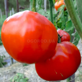 Высокорослый, среднеспелый, урожайный сорт, куст высотой 1,5-2м, плоско-округлые, немного сердцевидные, темно-красные, очень мясистые, великолепный вкус и приятный аромат, средний вес примерно 500-600 грамм, могут достигать до 1200 грамм.