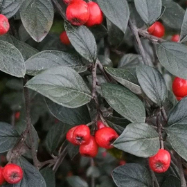 Лиственный кустарник, особенной красоты растение приобретает с появлением ярко-красных плодов, которые могут держаться на кустах до глубокой зимы, красив кизильник осенью, когда листья окрашиваются в различные тона оранжевого и красного цветов.
