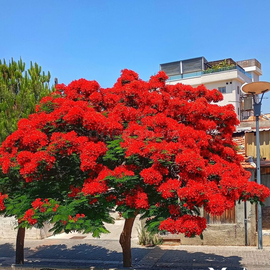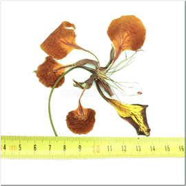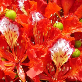 Цветы по красоте могут соперничать с орхидеями , состоят из четырех красных лепестков с «ножкой» и одного более крупного вертикального лепестка с желтыми и белыми пятнами, пылающие драгоценными цветами деревья представляют собой восхитительное зрелище.