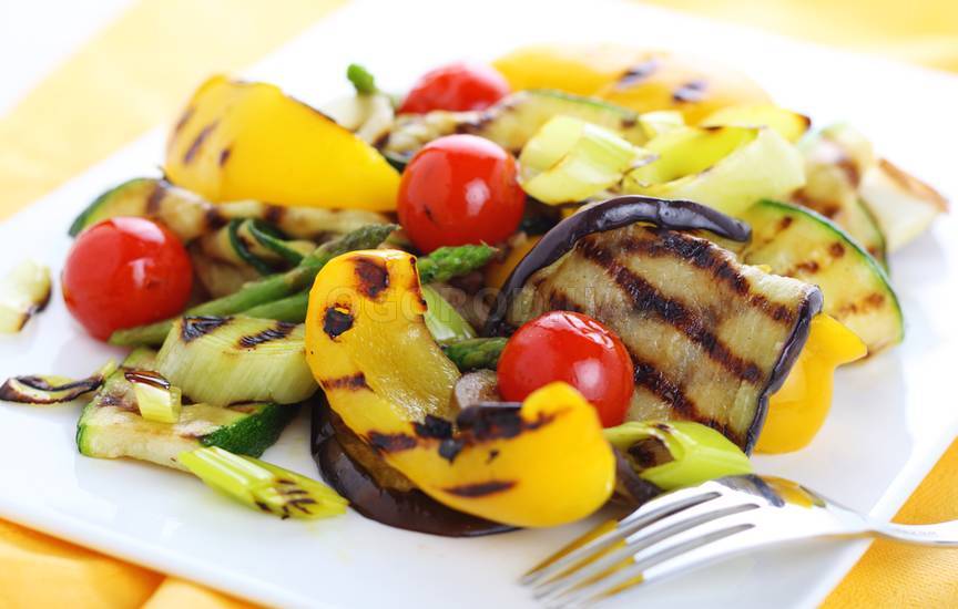 - Гриль или решетку разогреть до средней температуры и обжарить овощи с двух сторон.